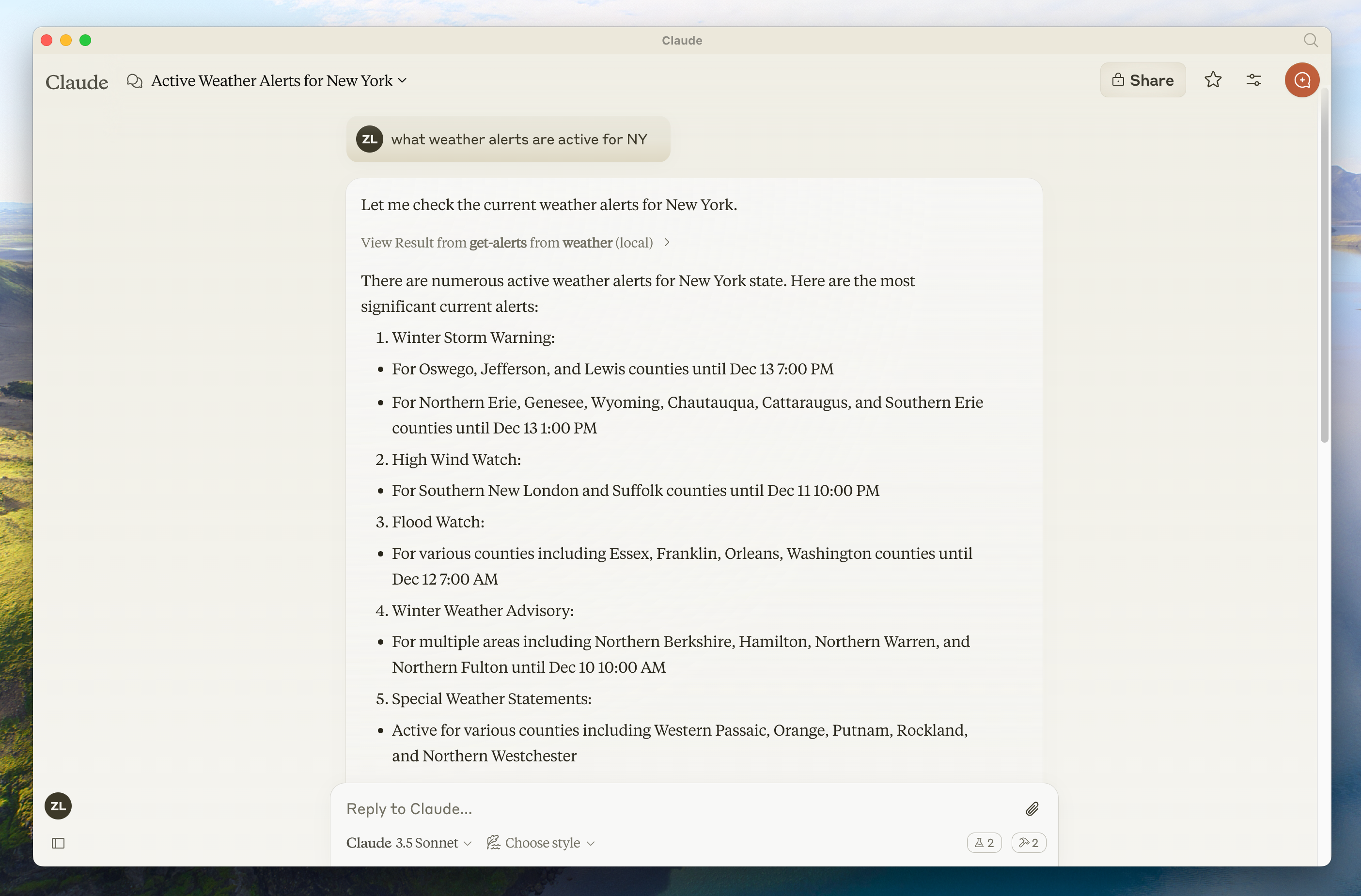 - Claude formulates a natural language response